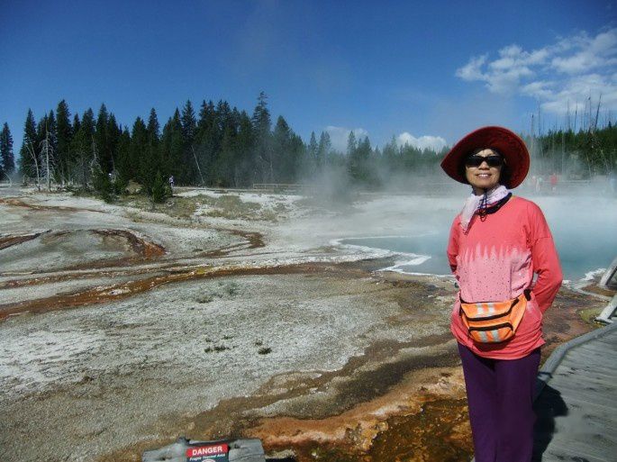 8月1日:上午9:20离开营地,游览西拇指湖景区,老忠实景区,大棱镜,间歇泉,桥湾,钓鱼桥。晚7:15到Madison营地,宿营费23.81美元。行程97英里。