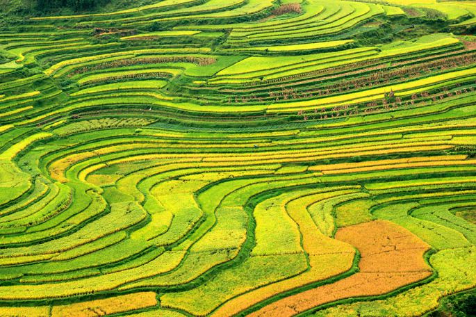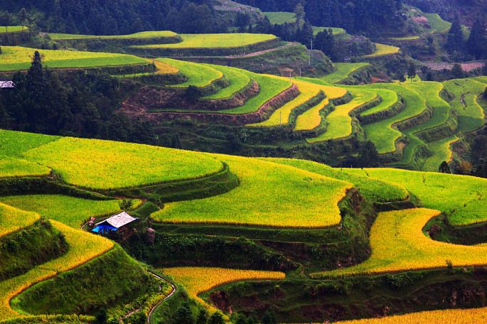 上图是排调镇旁边的梯田,下图是高要梯田
