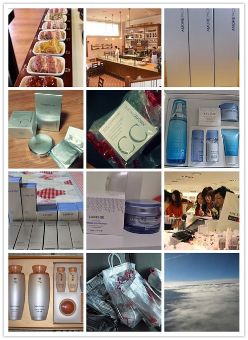 在韩国留学的朋友给我推荐了传说中的“八色烤肉”。花样很多,总之值得尝试。另外泡菜炒饭,紫菜包饭,关东煮,炒年糕等等也尝试了个便。另外在大街上随处可见的各种咖啡厅,既漂亮又温馨,不得不让人流连忘返。除此之外,还购买了很多免税物品,主要是以化妆品为主。感觉韩国人的皮肤都特别好,可能是跟这个国家的化妆品有关吧。在百货商店买到了很多爱茉莉的化妆品。在国内怕买到假的,网上更是有好多人打着代购的旗号卖假货。初到免税店感觉价格便宜到离谱,真的可以节省好多好多。而且刚好赶上了促销活动,感觉自己好像是捡到了大便宜,于是一气之下就买了好多好多~ 送朋友,送妈妈送同事哈哈哈~ 何乐不为呢,下面来看下我的韩国之行吧!虽然短短一天,但是感觉以后还是会来的~ 因为突然感觉韩国这个地方特别适合女生~!