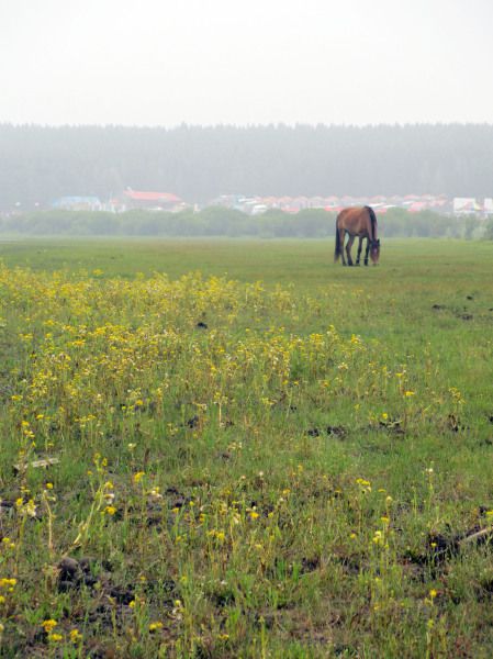 公园里我们住的是蒙古包,看着好象很美好,可是里面的环境啊,比火车硬卧好一点点而已……由于蒙古包内WC门特低,还要下台阶,我撞了2次脑袋,疼疼疼……虽然有淋浴喷头,但是之前说过这里晚上很冷,这里的热水温度完全不够,洗澡的话很容易感冒,所以最终我还是放弃了……加上这里早上的雾气非常大,被子床铺都是潮潮地……