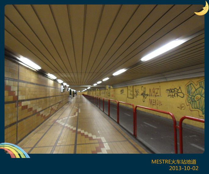 虽然到威尼斯MESTRE火车站已经是晚上十二点,但相比国内火车站的危机感十足,这里的火车站显得安全而平和,地道里干干净净,空无一人,路上也没闲杂人走动,凭着多年来旅游的直觉,我很快找到我在网上预订的宾馆“City of Art Venice LLoyd”
