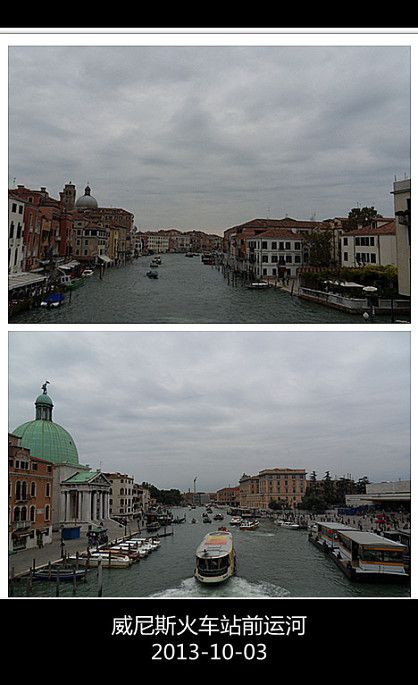 第二天一早,便乘火车来到威尼斯主岛,一下火车,映入眼帘就是威尼斯大运河,全球无数人慕名而来,都是从这正式开始威尼斯的旅程。这一天,天灰矇矇的,我也没有看到心目中碧水、清河。也许是过多的人类活动原因,如果不是这里深厚的文化底蕴,真感觉不过如此。