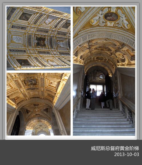 总督府里有一条“黄金”走廊,据说只有那些名字被写入“金书”的威尼斯人才有资格沿着这道金梯由长廊的二楼进入宫中。