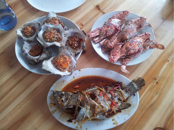 中午让小海带我们去市场买了生蚝和兰花蟹还有石斑鱼,价格如下生蚝3/个,兰花蟹35/斤,石斑鱼55/斤