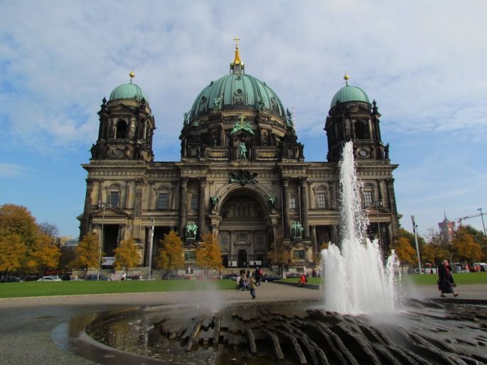 柏林大教堂(Berliner Dom)是基督教路德宗教堂,位于德国柏林市中部博物馆岛的东端。曾是德意志帝国霍亨索伦王朝(Haus Hohenzollern)的宫廷教堂。远眺博物馆岛可以看到宏伟的建于1905年的新文艺复兴建筑柏林大教堂(Berlin Dom),它以前曾是霍亨索伦皇族的宫廷教堂,其家族成员都埋葬在这里的地下室中。教堂内部修饰富丽豪华,于同一时期由同样的建筑家Raschdorff设计。其中最创珍贵的是大选帝侯及夫人Dorothea,弗里德里希国王一世及王后索菲·夏洛滕的棺材价值连城。主圣坛是1850年F·A·Stüler的作品。美术馆非常值得一看,风景独特。每天下午3点可以欣赏免费的管风琴演奏。