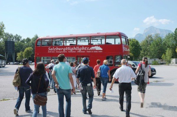 去萨尔茨堡的汽车,始发站也是在火车站,其实是火车站旁边。因为很小,他们就共用一个屋顶,也让游客方便寻找。150路,票价是9.9欧,大概2个小时,中间停了无数个站点,快到萨尔茨堡时,有一个很漂亮的湖,湖边众多人在晒太阳嬉戏玩耍。可惜我没有记下名字,看上去是本地人在休闲的吧,因为上下的人都没什么行李。