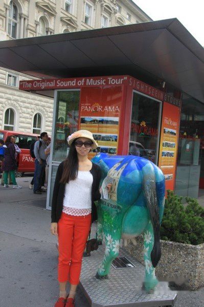 街没有逛成,省得破费。填饱肚子是当务之急,这个运气不错。粮食胡同Getreidegasse这边有个更小的胡同,我看门口放了黑板,写了各种餐馆的名字,战战兢兢不敢进去。转了个弯,看到了大门,里面其实很开阔是个啤酒花园,看看里面露天很多人坐着,才胆敢进去。这里有好几家经营各种风味的饭店,买了端到外面吃就行了。我吃到了最美味、最便宜的排骨。5欧,有我两只手那么大。我很土的,一开始呆在柜台前费力地看菜单,实物就摆在柜台上,于是我跟柜台里的帅哥对照,这个是什么,多少钱。好不容易确定了两样一个排骨,一个肉啥的,结果他动手切的时候,吓到我了。那么大一块排骨,够我吃两顿了。我跟他反复确认,你切的是5欧的排骨吗?得到两遍肯定后,我说,肉不要了,排骨就行了。那帅哥也没恼火,还是很友好地给我买了单。我入乡随俗地又买了杯啤酒,啃的欢,饮的畅啊!过一会儿,帅哥出来收拾桌子,还特地过来看我吃得咋样,我告诉他,是我吃得最美味的排骨了,他非常高兴!我对萨尔茨堡的印象也更好了。