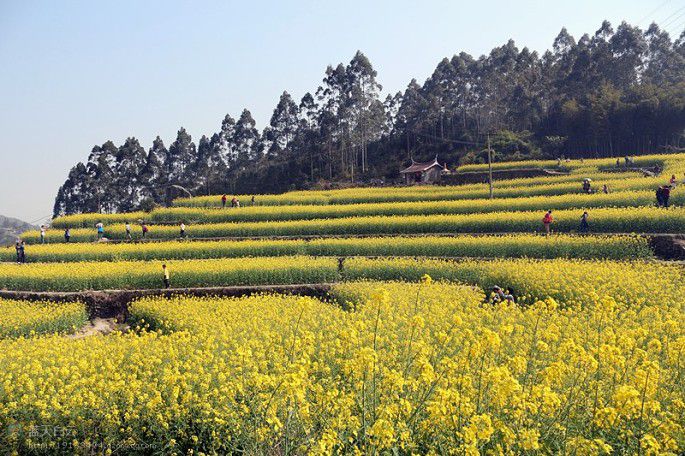 莆田地处亚热带北纬25度,每年开春之际油菜花盛开,市内有三处较大规模的花田供游人赏玩,分别是坪盘村、九鲤湖和南少林,南少林花田虽然规模不及前两处,但却胜在梯田的层层叠叠。