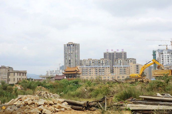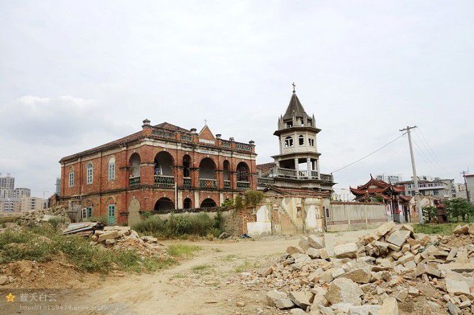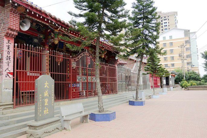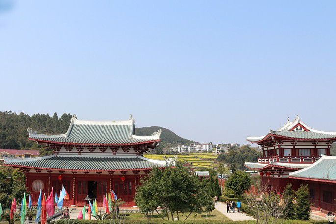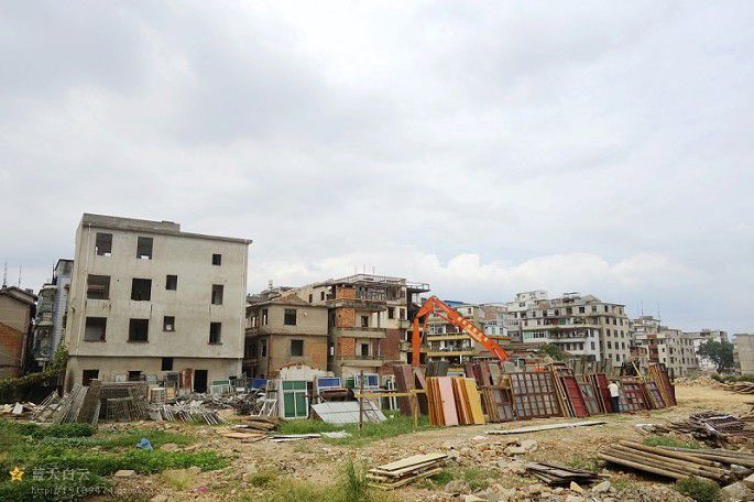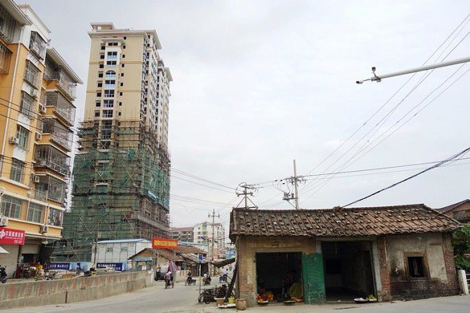 庙宇的联排别墅,一看就知道是拆迁的产物。