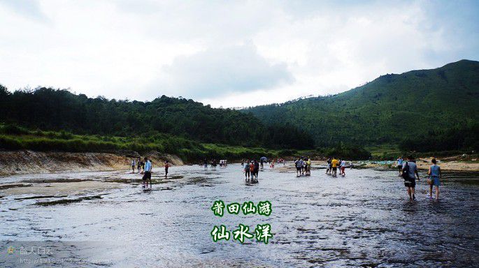 仙水洋堪称闽中水域一大奇观,类似宁德屏南的5A级景区白水洋。这里溪宽30多米,溪床平展,溪流轻缓,水深在半米之内。溪床由整块棕色的平坦石皮构成,沿溪延伸近1公里,号称天然水上步行街。