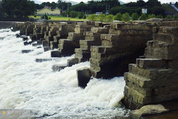 汹涌的木兰溪水和兴化湾海潮汇流处,有全国重点文保的木兰陂。它建于北宋熙宁八年(公元1075),是中国古代一座引、蓄、灌、排、挡综合利用大型水利工程之一。