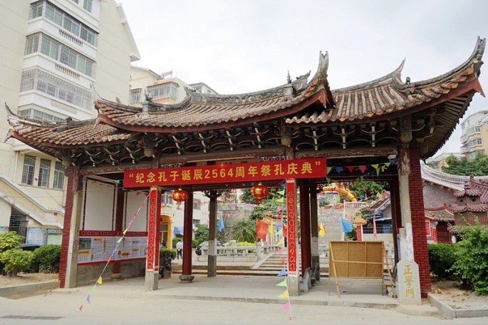 涵江孔庙,又名涵江书院。唐敬宗宝历二年(公元826年),孔子第41代嫡孙孔仲良由青阳丞升任莆田令,遂择居涵江璜山。后孔仲良病逝于官任,他的子孙就世居璜山(今紫璜山)。