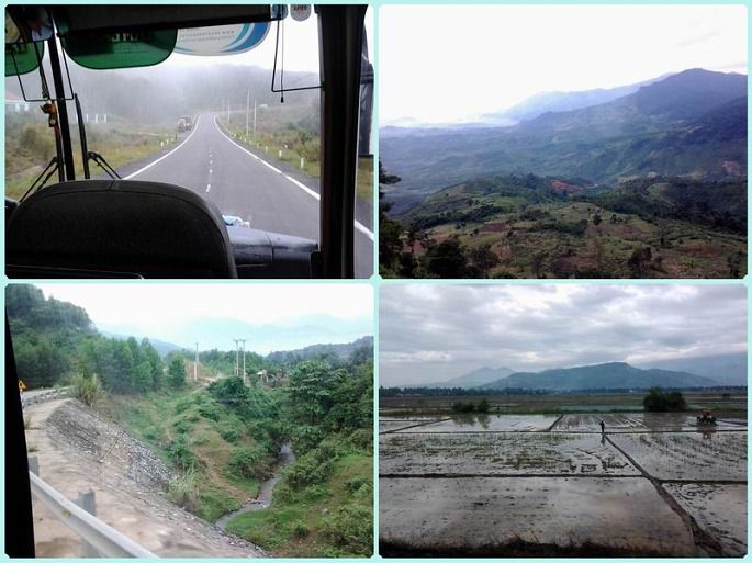 离开了阳光、海浪、白沙滩的芽庄,我们乘车去大叻。看路边,农田里灌满了水,远处绿油油一片。有人在整田,还有人在施肥。离开了平原后,大巴行驶在山路间。看远山起伏,连绵不断;看山间小溪,欢乐流淌。一会儿,太阳没了,只见雾茫茫的一片,能见度很低,司机打开车灯,减慢车速。在黄山、在华山、在飞机上,我都欣赏过那浩瀚的云海,其实,我们现在就在云海中行。突然,一缕阳光照射了进来,瞬间眼前一片明朗,阳光灿烂。真是天上人间。