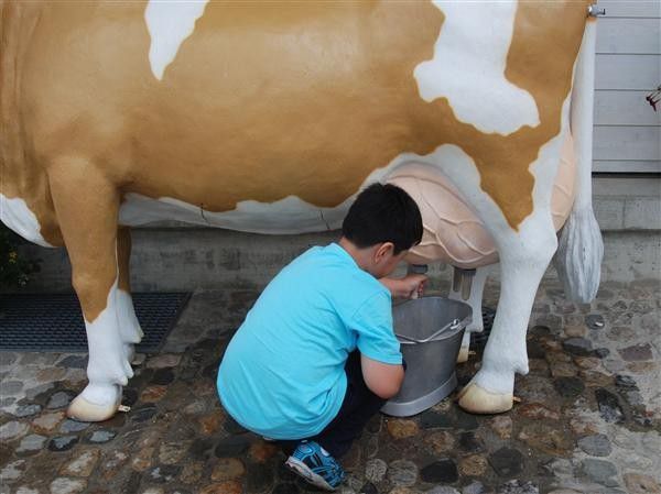 吃好了丰盛的午餐,我们稍微逛了一下小镇,小孩在儿童乐园里玩荡秋千,开心不得了,还可体验如何挤牛奶。还买了冰淇淋,味道还不错的。