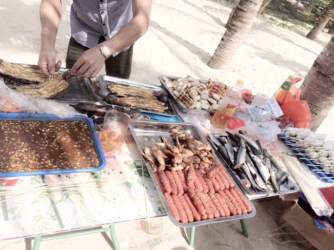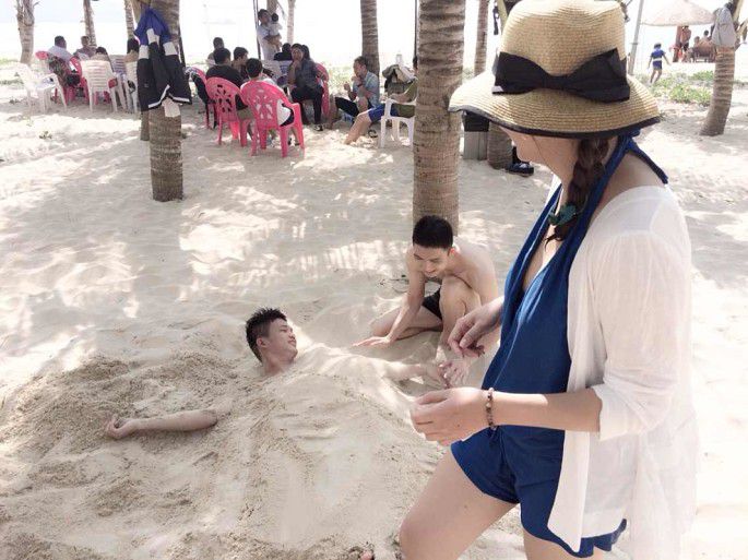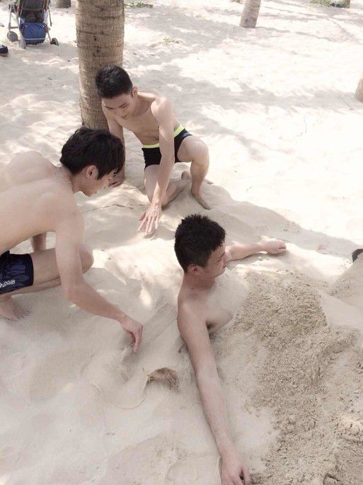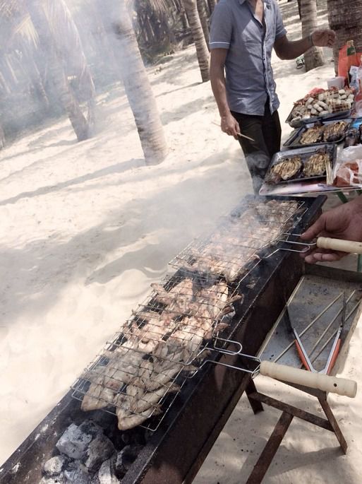 这沙埋的节奏!··大家别太笑话哈!~·嘻嘻。这么玩耍,时间好快!··到饭点咯,我们的烧烤时间!··我们的桌子可是沙滩桌o !