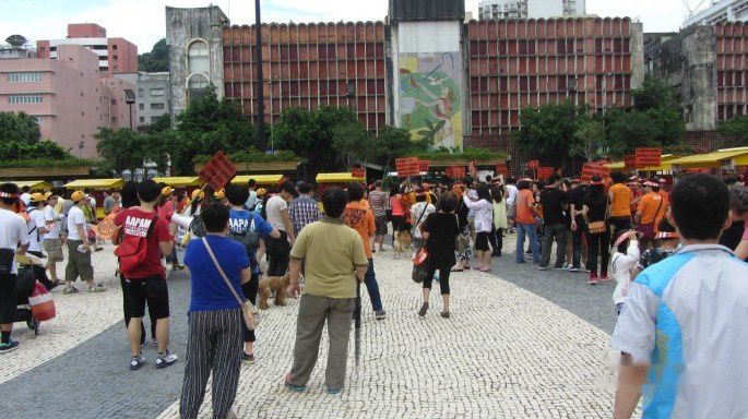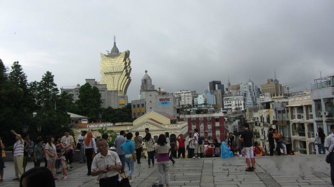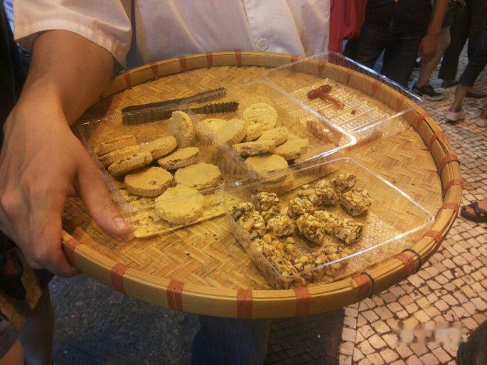 1澳门大三巴前面那条步行街里到处可见的试吃----是澳门特色小吃