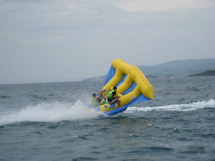这瞬间,四个人,有三个掉进海里了,只有我还在飞鱼上,哈哈哈