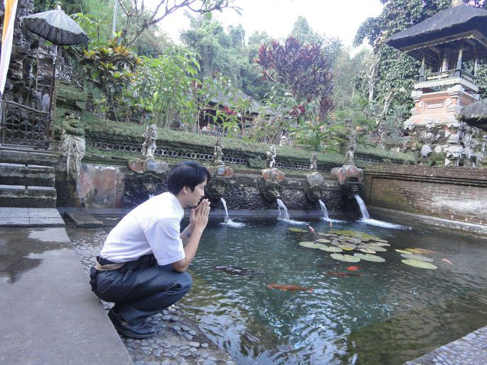 圣泉寺Tirta Empul,据说有上千年的历史了。碑文记载,寺建于公元962年。千年悠悠,有多少沧海桑田,物是人非,而这里的一汪泉眼依然汩汩流动,泉水清澈见底,鱼草清晰可数。泉水可饮可沐浴,更可祈福,洗涤心灵。