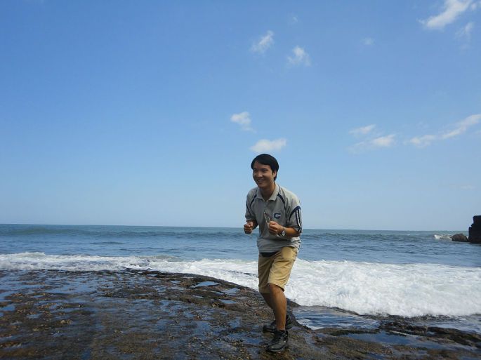 到了巴厘岛,你不去海神庙,那肯定是一大缺憾。庙就建在离海岸不远的一块巨石上,涨潮时,人不可往来,退潮时,信徒才小心翼翼牵手而过。朝拜的不是海神,而是他们的信仰。据说,在这里看海上日出,异常壮观。可惜,时间催着我们前进。