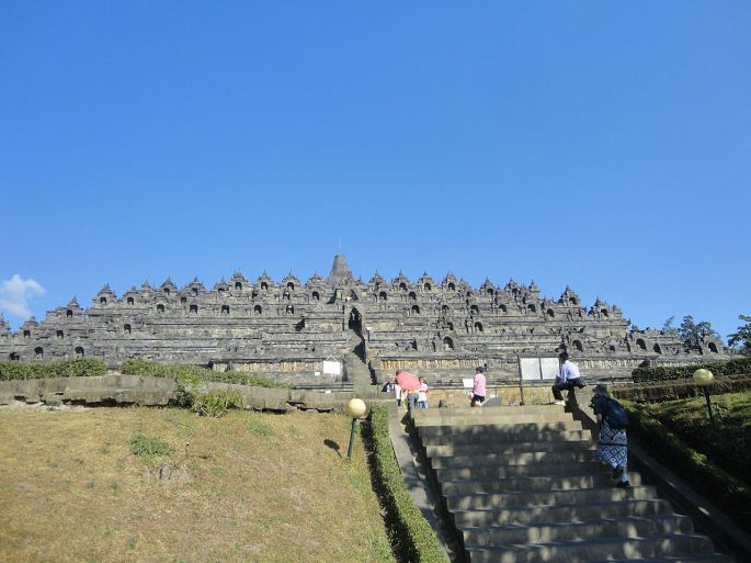 Borobudur婆罗浮屠,现存世界上最大的的佛寺。古代东方四大奇迹(万里长城、印度泰姬陵、印度尼西亚日惹的婆罗佛屠、柬埔寨吴哥窟)之一。火山灰曾经将它淹没数百年,如今依然雄伟如常。