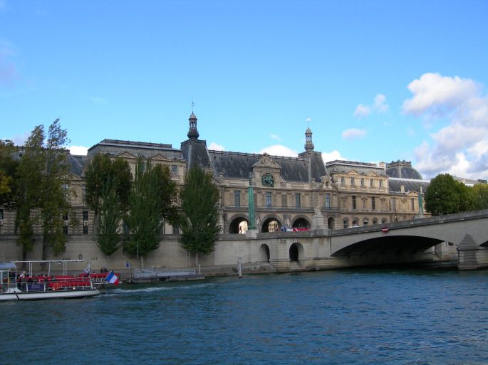 塞纳河的两岸,都种植着繁茂的梧桐树,从船上看过去,蓊蓊郁郁。树林的后面,就是庄严的建筑群。河北岸的大小皇宫,河南岸的大学区,河西面的埃菲尔铁塔,还有位于河东段城岛上的巴黎圣母院,等等,都以富有鲜明个性的建筑形态,展现出了它们所共有的华美风格。在游船的一个转弯处,好似半岛的地形上,还矗立着一座举着火炬的自由女神像,造型与美国纽约的那座一模一样,虽然纽约的那座是法国民众送给美国民众的礼物,可是巴黎的这座却明显地比纽约的那座矮小许多。河的某处有水闸,水闸都是巨大的铁门,至今开合仍用手工操作。然而在距离如此古老的设备不远处的河面上,就停泊着用豪华游艇改建成的船型餐厅。餐厅的设备很现代化,播放着新潮音乐,穿着红白两色制服的侍者正在舱内忙碌着。擦得锃亮的玻璃窗使窗内窗外的人互相看得清晰,舱内的食客可以一边用餐一边观赏河中与对岸的景象,游船上的人也可以一边观赏河景一边观看用餐的人们。