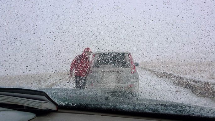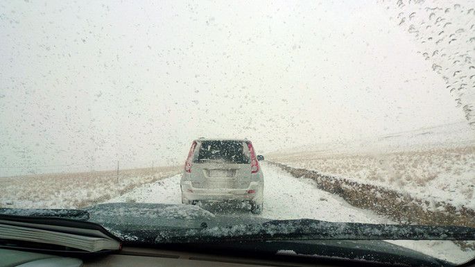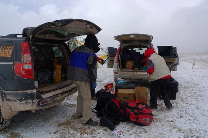 离开了当惹雍措,我们继续前往下一个目的地--措勤。为了让受伤的车子少走一点路,斌大师在金幡所在的地方等我们,等我们到达以后便又开始重新装车。风雪中,好冷!