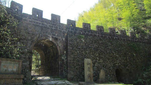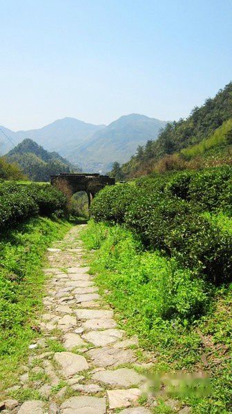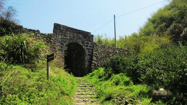 10点05分到了龙溪村,在村口遇见了一队和我们反方向徒步的队伍,互相打着招呼,问了下各自的行程,我很喜欢旅途中这样的相遇,问候过各奔东西,很有点 沧海桑田、人世浮沉的感觉。出了村就进了山路,古道在崇山峻岭中蜿蜒,一路林木森森、篁竹蔽天,石级缝中冒出青草,路旁开满不知名的野花,一派春意盎然, 却依然有着浓浓的苍凉感。大约11点到了龙井村,村口有妇女在采茶,不知是否有龙井茶?在村口的一户人家休息一会,吃了点东西,11点20出发,11点 40终于见到了仙霞第四关。