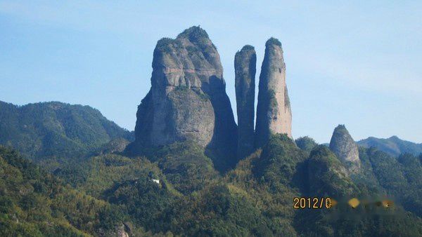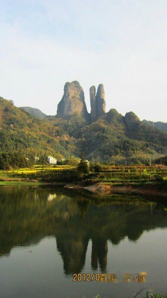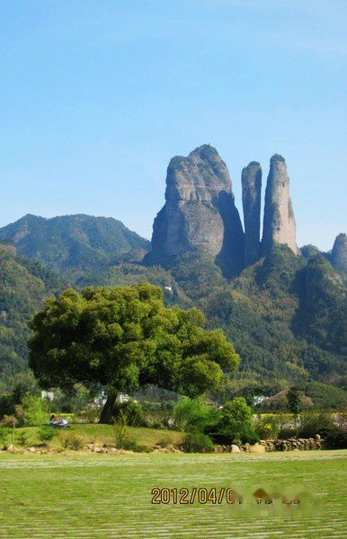 4月1日。晴。下午13点40,火车居然提前十几分钟到达了江山火车站。车站很小,出了站,才发现外面就是个农贸市场,我们做了“摩的”(就是摩托车当马 力,上面装了个小棚子的简易车)到江山车站,司机是位50多岁的师傅,一路上很是热情的给我们介绍路线,还把我们一直送到车站里面。14点10分坐上 202路小巴车,晃晃悠悠一直到3点15终于到达了江郎山风景区口。期间还发生了个有趣的事:由于乘车的都是当地人,司机把我们四个给忘了,一直开到终点 站,我们下车后又把我们喊上车,调头把我们送回景区路口。在景区口又遇见客栈的老板娘,说电话里听见我们做过了站,怕我们找不到,特地来接我们。下了火车 不到2小时,遇见了这么些淳朴的人,给我们的感觉真是很好。