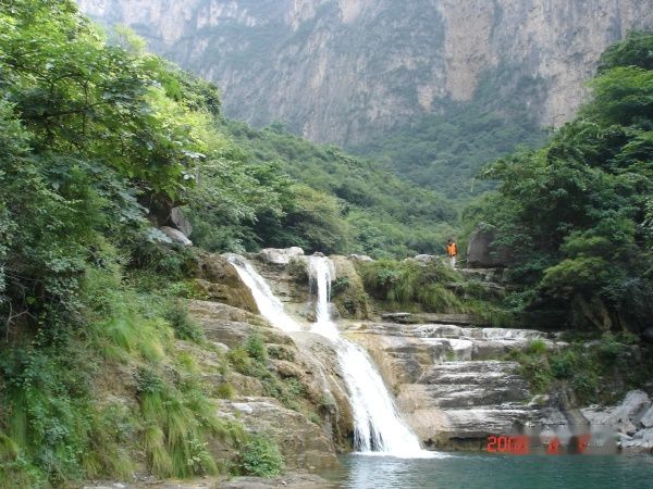 8月2日早8:30我们来到了云台山。云台山景区内有旅游大巴,把旅客送到各景点,车资算入门票中,可以任意乘坐,每车配有讲解员。我们今天的行程是潭瀑峡、泉瀑峡、猕猴谷。 云台山山势陡峭,峰峰相连,绵延不断,气势恢宏,处处有景,即便是游客少至的地段,也会有令人惊喜的美景。云台山是谷底看群山,北方的山和南方的山有极大的不同,更个性、更大气、更清朗。 潭瀑峡以“三步一泉,五步一瀑,一步一潭”著称,有小九寨之美誉。7、8月份是这里水最多最美的季节,可惜我们遭遇了游人高峰。进入小九寨就被拥挤的人群给震撼了,人挤人,人挨人,要一步一步向前挪动,原本宁静安适的小寨沟人满为患,刹时就失去了欣赏美景的心情,感觉就是想迅速逃离。老公和我涉水跃石,企图走捷径越过人群,可是不幸地发现走入了出口的行列,幸好老公果断抉择,既然来了再挤也要去看看小九寨的真面目。我们又重新汇入人群中,随着眼前不断涌现的溪流,心也随着清凉了,越往里走越开阔,人都散开了,景色也越来越吸引眼球。