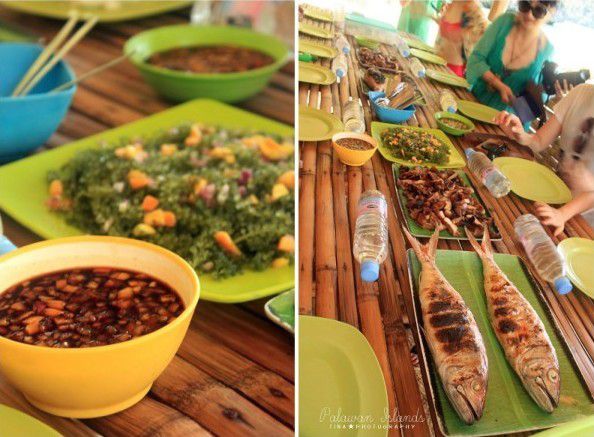 吃午饭了,烤猪颈肉,烤鱼,海葡萄,水果香蕉,这可是跳岛游的标准配置,丰盛又好吃。船夫们的厨艺都挺厉害的。