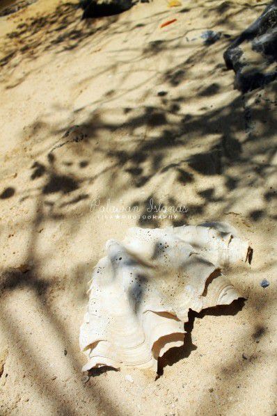 吃饱吃喝足,在海边玩耍,捡了一个贝壳,样子很漂亮,像是蕾丝的花边。