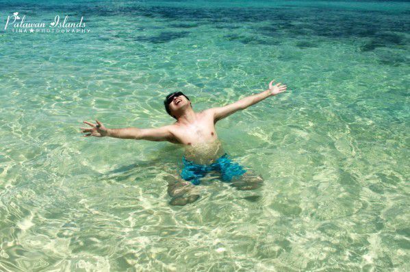 曾先生拍完照,实在忍不住要躺进这蓝色的海洋里了,有人说要是高兴嘴都会笑歪,说的就是他这表情吧哈哈。