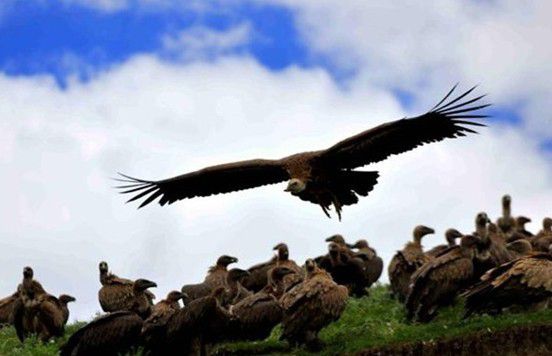 天葬:又称鸟葬,这是藏族的一种古老风俗,也是藏族地区最普遍的葬法。藏族的村落旁都设有天葬场,还有专门从事天葬的人,藏语叫“洛甲巴”。人死后,家人先将死者用氆氇包好,在家里停放三天后,用马和牦牛驮到天葬场。天葬一般是在凌晨进行,主要是为了让空腹的鸟类尽快吃尽尸体。