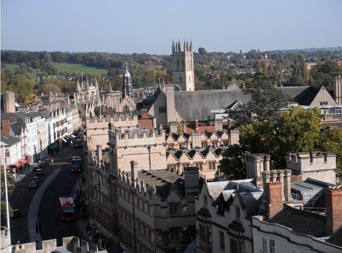 接下来一天的行程,是去英国最著名的大学城牛津。牛津城是一片舒缓的丘陵地带,泰晤士河与查韦尔河在此交汇。据说公元700年左右,撒克逊女王弗莱德威德在此地修建了第一座修道院,从而成为牛津城的最早建筑。