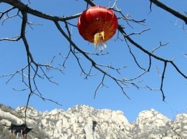 你看,这是哪,白色苍茫的山上,树枝上挂着红红的灯笼,不醉人也迷人。