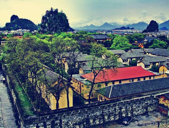 桂林市的中心,有座用青石料一块一块砌成,方圆几华里,高一丈多的王城。