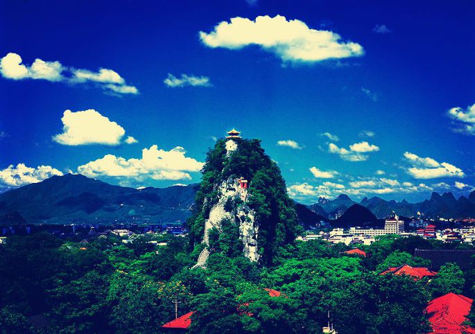 大家称它为南天柱。要想晓得这南天柱和桂林城的来历呀,还得从秦始皇赶山填海讲起哩!