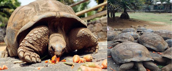 离开圣水湖,前去鳄鱼公园。鳄鱼公园有超过1500只从马达加斯加引进的尼罗河鳄鱼。但貌似很多人去鳄鱼公园是为了和巨型象龟玩的。我就是那很多人之一。野生动物园也有象龟,但是那里的象龟可不允许游客近距离接触,更不允许游客坐在其身上。我也是超级想体验一把坐在象龟身上的感觉,但是看着象龟那副憨憨的可爱样子,我还真不忍心。
