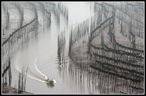 十年前,这里还只是个默默无闻的渔村,司空见惯的大自然景像,习以为常的渔村生息,早出晚归的渔业操作,知足知乐的淳朴民风,一幅人与大自然的和谐图景,霞浦在“默默无闻”中却拥有着宁静、安逸和悠然自得。曾几何时,名家的摄影作品将霞浦滩涂带入了人们的视野,名声鹊起,也引来了现代世界的商机。专业、业余的摄影者趋之若鹜,据说人们争先恐后抢夺“最佳摄影点”,以至一排长龙,挤得水泄不通,为的是能在这“摄影天堂”中捕获一张“成功作品”。人们在追求构图和光影的完美中,也许就忽略了与大自然的交流和灵动。