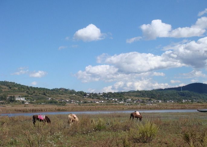 决定去拉市海竹筏逍遥游,是因为好友的推荐,那里的水质非常好,清晰可见水草的曼妙身姿,蓝天白云倒影在水中,交相辉映。一条小船加上船夫,慢慢悠悠地开船,船夫唱着当地纳西族的歌谣,荡荡漾漾地划向湖中,感觉自己就像身处画中一样,风景真的很美。拉市海这一片湿地,也是深受鸟类的喜欢。据说,每年到这里来过冬的鸟类有3万只左右,,其中有非常多的珍稀鸟类,所以,想要看鸟类的话,一定要选对时间喔。