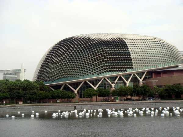 新加坡以花园城市著称。大巴在高大的绿树丛中穿梭。最后停在黄金大厦下的车站。