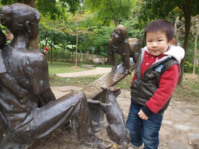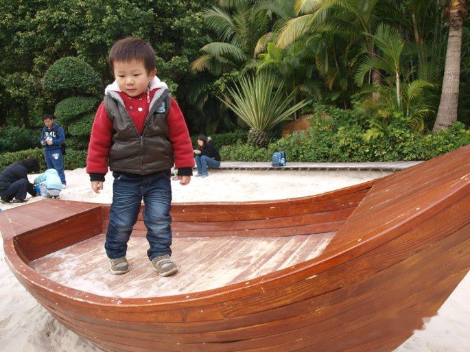 园博园里的银沙,没有带玩沙工具的大宝很想念他的玩沙车,无奈只能在微缩的小船上偷偷感怀了。