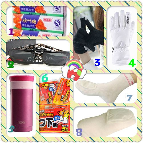 (3)触屏手套:用手机拍照时特别管用,戴在(4)里面。7-11 30元