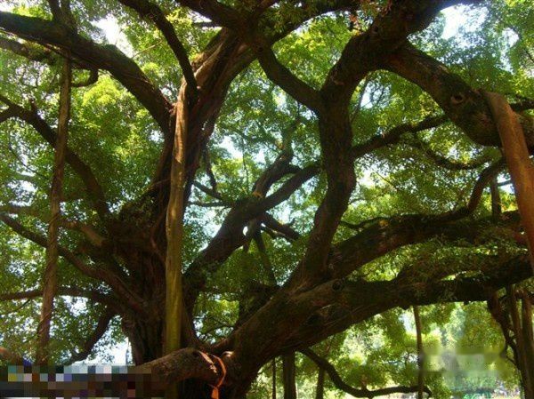 到达终点已是艳阳高照的中午,我们骑着单车往下走一路大榕树-月亮湾