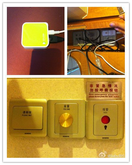 最下面的那个图是在马桶旁边拍滴,呵呵。克拉发现竟然可以将电视的声音转播到卫生间,很神奇哟,嘿嘿.......