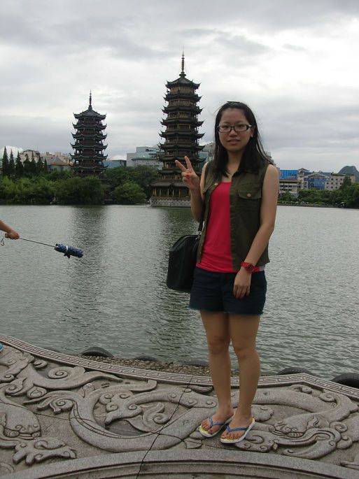 于是来了个桂林巴士游玩,还挺爽的。过了不久,天居然晴了,我就去有漓江了。哈哈,很美,很美,而且,很开心,因为认识了一对非常友善的夫妇。哈哈,还买了与象鼻山的合照哦。