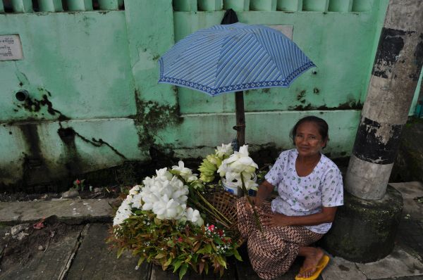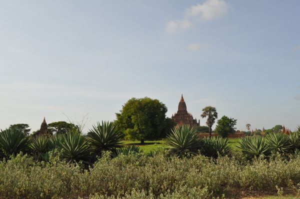 到达仰光机场,觉得反差特别大。海关都是穿以前70年代电影里看到那些褐色的有点man的外套。有点像回到过去。小云有看攻略,我是省略了这一步。机场内门口的位置有一家旅游公司在售卖到BAGAN的机票。75美金。再过一点有个应该是旅游咨询的counter,我们走过去问那个帅哥,有没有车到市区苏累,他说没有,最好打车6000甲。小云问这里附近是不是有公交车到苏累啊。然后他想了想说出机场右走20分钟左右有个公交车站有两部公交车51和183到还写了这两路车的缅甸文。我当时就想数字我还是认得的。他还帮我们换了缅甸币。1美金对750甲。(市区也一样,大额的100美金以上可以换780到800)出机场就看到很多乌鸦,右走一直走到有个分叉后呆掉。逮住后面跟了我们很久的两个小女孩问路,她们有一个可以讲国语,帮我们问路,是右手边的路口。走到一个小集市,有人在卖一串串的花,200甲有一大串,大概是由30根线串成的独立小串组成的。对面是一个车站。在那遇上一个旅美的韩国伯伯在等车,一起上车坐到苏累,不断有人上车,穿笼几的男人把钱包就很明目张胆的别在腰间,可以想象这里的治安有几令人安心。伯伯就带我们去他格价后觉得不错的OKINAWA。10美金一晚。付钱时发现带折痕的美金是拒收的时候开始很紧张,因为我们3个人就只有200美金是没有折痕的。入住后已经8点多,找地方吃饭。结果都是没有找到,就在街边吃炒饭,不好吃。满街的小摊档都挂一小串2,3根线串成的姜花,满街的浓烈的姜花香味。也有人直接把茉莉花和姜花花串别在头上华美之极。第二天爬起来去大金塔。离苏累3个站,很近。在路口就看到一群穿着带粉色的衣服的女士个个手持鲜花在几个僧侣的带领下走向大金塔。在入门的地方就把鞋脱掉,光脚爬过N级的楼梯才到顶。N多信众陆陆续续手持鲜花来到,献上鲜花后在一些佛像前的空地慢慢静静地跪拜。喜欢这种安静而懒洋洋。呆不够2个小时就被小云催.无奈死。下午去买票,在昂山市场附近。23美金到BAGAN。5点的车。4点要出发到汽车站。路过昂山市场逛了逛。勉强捡了支还算可以就是细看不对称的贝壳雕花钗(后来在BAGAN插了一个下午收拾时断了)。到汽车站,乱葬岗甘乱,很多小店但是就是没有正规售票的窗口。停车的地方是凹凸不平的泥地。在那等车时遇到一个台湾的阿姨和刚刚读完汉语硕士回国见未婚妻的缅甸人英雄。都在感叹这里的艰苦生活。上车,阿姨刚好坐我前面。我的旁边刚好没有坐就叫阿姨坐过来聊天打发时间。阿姨很有趣,然后就开始了长达3个多小时的斗嘴。窗外的风景很好一望无际的平原,青草,偶尔有缓缓的像微波的起伏,偶尔闪过一两棵小树,一切都是那么原生态。中途停下来吃饭。终于在不正常的3天饮食里遇到一顿还像粤菜的晚餐。白饭加青菜炒鸡肉,我是为了吃那些青菜,包括白菜花,青椒什么的。鸡肉样子怪怪的。桌面还摆了一些豆荚,薄荷叶,圆圆的像小版番茄的茄子。凌晨3点终于到了。到站后有很多马车在等客,伯伯就带我们到EDEN GUESS HOUSE。7美金一晚,当晚不计。阿姨问英雄,你上去看看房间你喜不喜欢。英雄就在那里装无所谓,阿姨无所谓啦,你们住哪,我就跟你住哪。(后来在我们确定住那后看到房间很高兴的跟阿姨说,阿姨我超喜欢,还以为你们带我住很差的地方,7美金啊,很便宜啊。当时听阿姨转述这时,笑死我。小男生,明明就很担心还装。)有英雄在,基本上我就不用烦英语沟通的一些不方便。放下行李,想着反正已经睡不著,就租马车去看日出。6000甲,很贵,被宰。还蛮远的,半个小时后才到,那里有个高塔,有楼梯可以爬上去。有点畏高,脚有点震,要完全不看后面才能够爬上去。天一片青蓝,月牙很白,纯净之极。上到顶,脚震的有点站不稳。只好坐着看远处,等日出。有云雾,不是很清。N多古塔错落在混生的伞形树冠的6米多高左右的树林里,雾像轻纱,悦目至极。(很是喜欢这种有点像热带草原景观)。呆了好一阵子,才回去。回去时看到有一匹马口吐白沫,有点不忍,阿姨和我就下来想走回去。在这里晃荡一下也不错,趁清晨的阳光还不毒。走走看看。也的确看到不少美景。走了很久,才发现路还有很远很远,我的水也喝完啦,也开始有点饿啦。路边隔不远就有些瓮装水供路人喝。我也装来喝,开始以为是井水,后来知道是用网布过滤过的雨水。晕死。第一次喝雨水。回到GUESS HOUSE后洗洗睡啦。到两点多才爬起来去吃饭。下午去交人头税,到BAGAN的外国人都要交。10美金。终于把一张有折痕的美金花出去,开始没有那么紧张。交税最气的地方不是店主告诉我们不可以由店主代缴,说离店20时分钟,我们走了很久,没有任何的指示牌,也有可能指示牌是缅甸文我看不懂。而是既然都是外国人才要去交税的地方拜托有个英文指示牌。路过,看到一张大大的僧侣照片,不知道那个是谁,一只眼睛无神,一只眼睛毫无遮掩的透着色情的欲望。奇怪很久僧侣怎么会有这种眼神,而且还大摇大摆的把自己这种状态摆出了。阿姨在那感叹如果是昂山素季执政他们会有希望过更好的生活,是的,如此善良的人们值得过更好的生活,然后告诫我们不要讲昂山素季这个名字。“我在坐出租车时提起这个名字,英雄就很紧张的抓住我的手说,阿姨不要说这个名字,会被抓起来的,那个出租车司机回头盯了我们一眼,然后我只能说是啊,我是说我