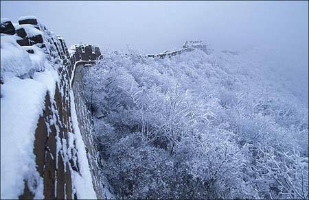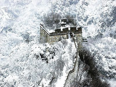 大雪无痕可以想象,雪落长城是怎样的壮观场景。北京雪景较好的长城有古北口和箭扣,这两个地方的长城都是野长城,雪霜凝结在长城的荒草上能让人充分感受到历史驻足于冰雪间的凝重。但是箭扣的交通到了冬天不太方便,只有少数摄影发烧友可去。古北口就在京承公路上,所以如果你仅仅是为了赏雪,建议最好去古北口,在不是很困难的情况下去看看卧虎山和蟠龙山上雪与长城的融合。