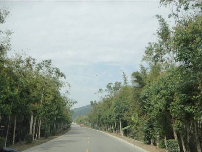 坐上大巴,大概一个钟头之后,开始看到沿路的两大排大树,虽然隔着玻璃拍摄,但是那大片的绿色,这难道不就是传闻中作文里面的那句“左右两旁的大树,微微的随着风儿晃动,仿佛就像在对我招手一样,欢迎我们的到来?”