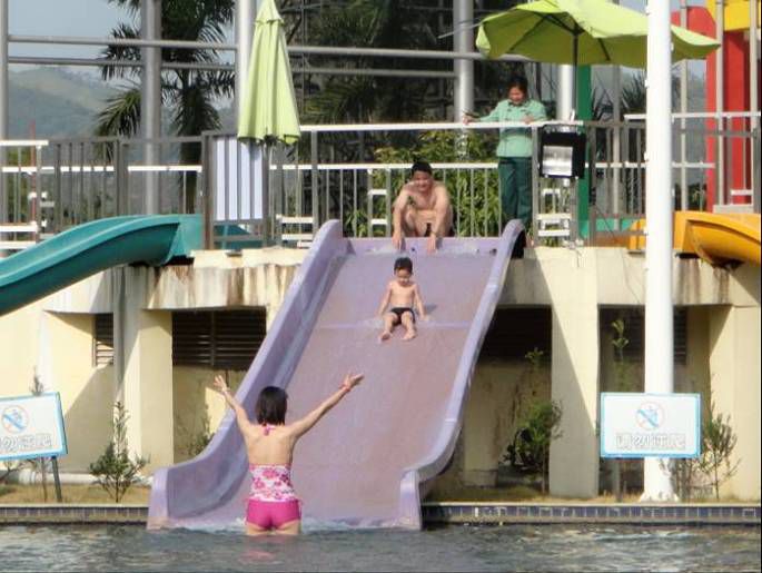 稍微散步消食之后,是时候泡温泉了,作为一个精明的消费者,我特别会安排时间,下午五点钟之后就要暂时关闭的温泉欢乐水世界,得优先去玩,这是必须的。冲天回旋、六彩滑道,老刺激啦。